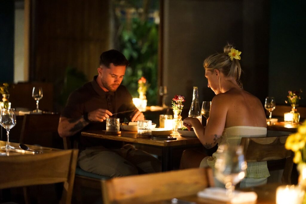 Food is part of the experience. At Shore Amora, guests dine at Boheme Canggu, a restaurant designed with a focus on atmosphere and connection.